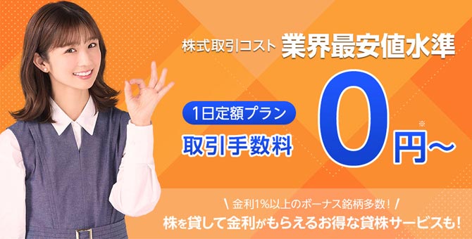 ※1日あたり50万円まで手数料無料の定額制のみ。50万円以上は1日の約定代金合計金額に応じて手数料が加算。